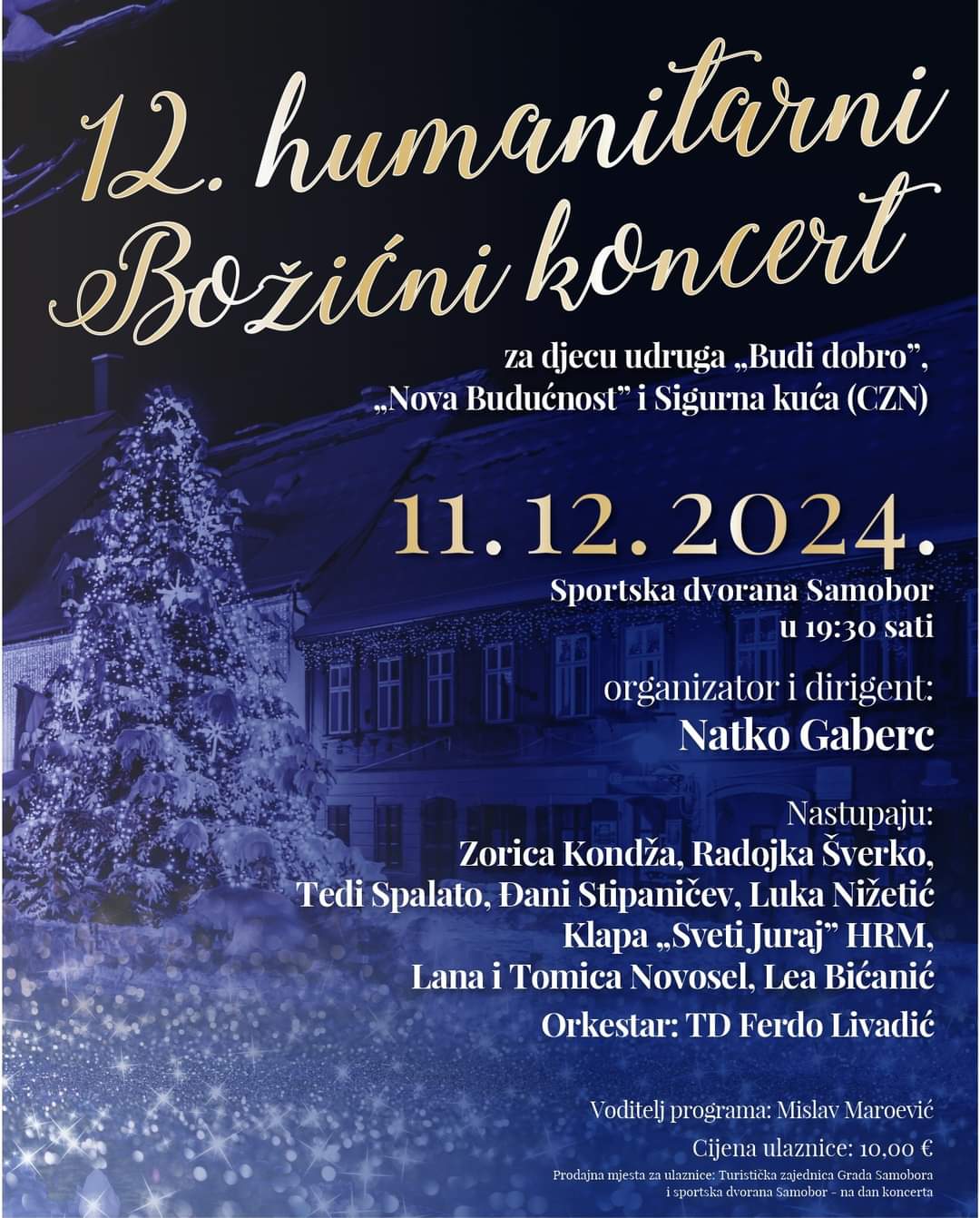 Doživite nezaboravnu večer ispunjenu glazbom, zajedništvom i dobrotom. 12. Humanitarni Božićni koncert u Samoboru prilika je da uz glazbenu umjetnost učinite plemenito djelo u blagdanskom duhu. Rezervirajte svoje ulaznice na vrijeme i budite dio ove čarobne večeri!