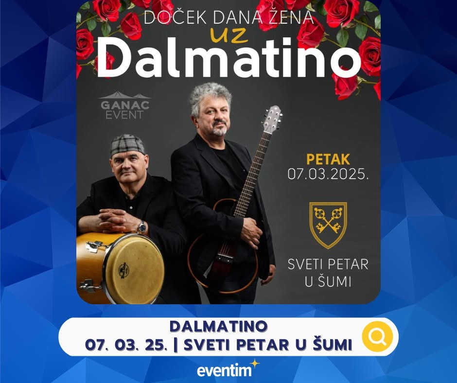 Ne propustite priliku za romantičnu i emotivnu glazbenu večer uz Dalmatino. Vidimo se 7. ožujka 2025. u Svetom Petru u Šumi!