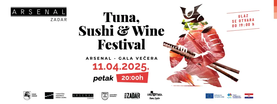 Ljubitelji sushija, vrhunskog vina i morske delicije — pripremite se za gastronomski događaj godine! Tuna, Sushi & Wine Festival vraća se u Zadar s ekskluzivnom gala večerom u Arsenal Zadar, koja će se održati 11. travnja 2025. s početkom u 20:00 sati. Vrata se otvaraju već u 19:00 h, a večer obećava nezaboravno iskustvo za sve gurmane.