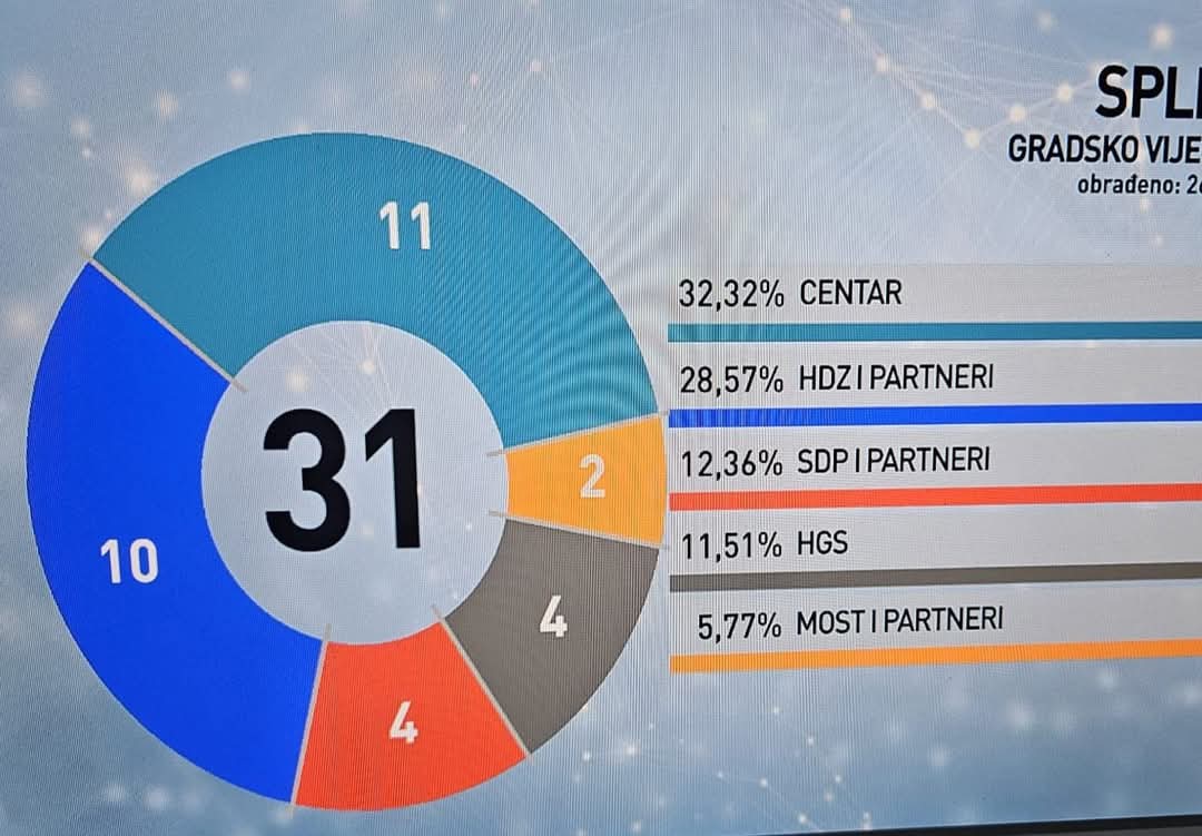Ukupno se u splitskom Gradskom vijeću raspodjeljuje 31 mjesto, a pred novim sazivom bit će brojni izazovi i potencijalne koalicijske kombinacije za formiranje većine.