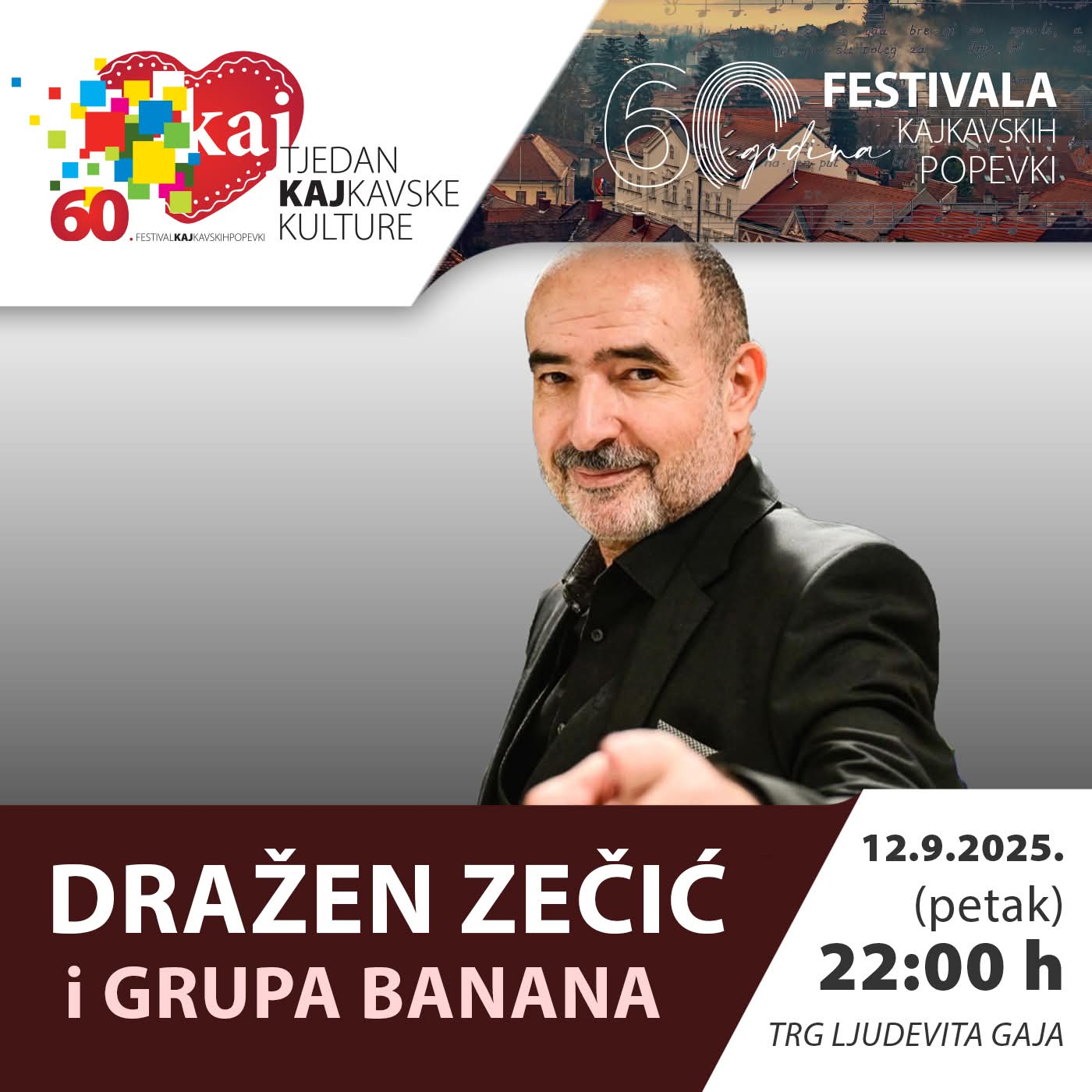 Pridružite se spektakularnoj večeri na Trgu Ljudevita Gaja u Krapini! Dražen Zečić i Grupa Banana nastupaju 12. rujna 2025. u sklopu 60. Festivala kajkavskih popevki. Početak koncerta u 22:00 h – ulaz slobodan!