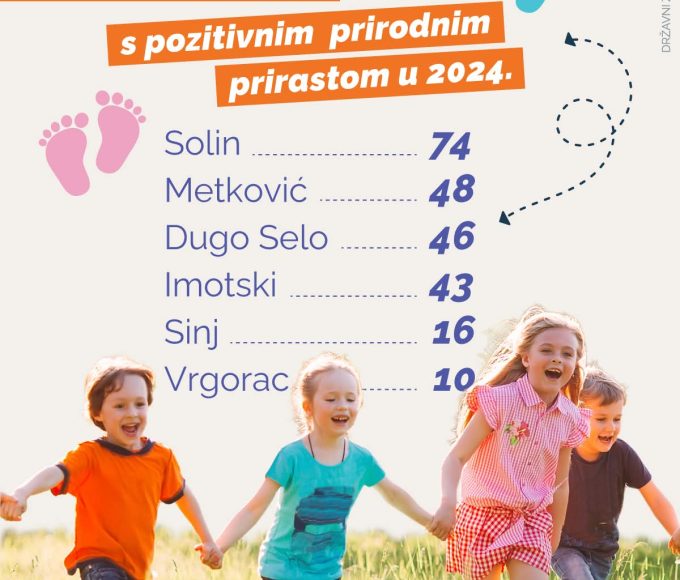 “Gradovi s pozitivnim prirodnim prirastom u 2024.: Solin, Metković i Dugo Selo predvode Hrvatsku”
