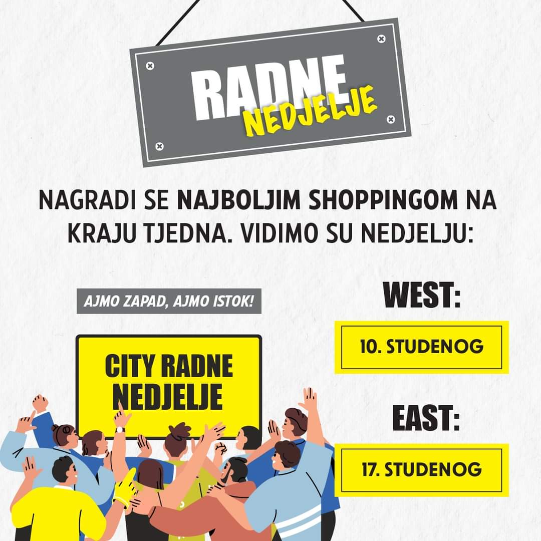 Želite nagraditi sebe najboljim shoppingom na kraju tjedna? City Center vam nudi idealnu priliku za nezaboravan vikend shopping! Pridružite se shopping entuzijastima u radnim nedjeljama u City Centeru i uživajte u posebnom iskustvu kupovine.