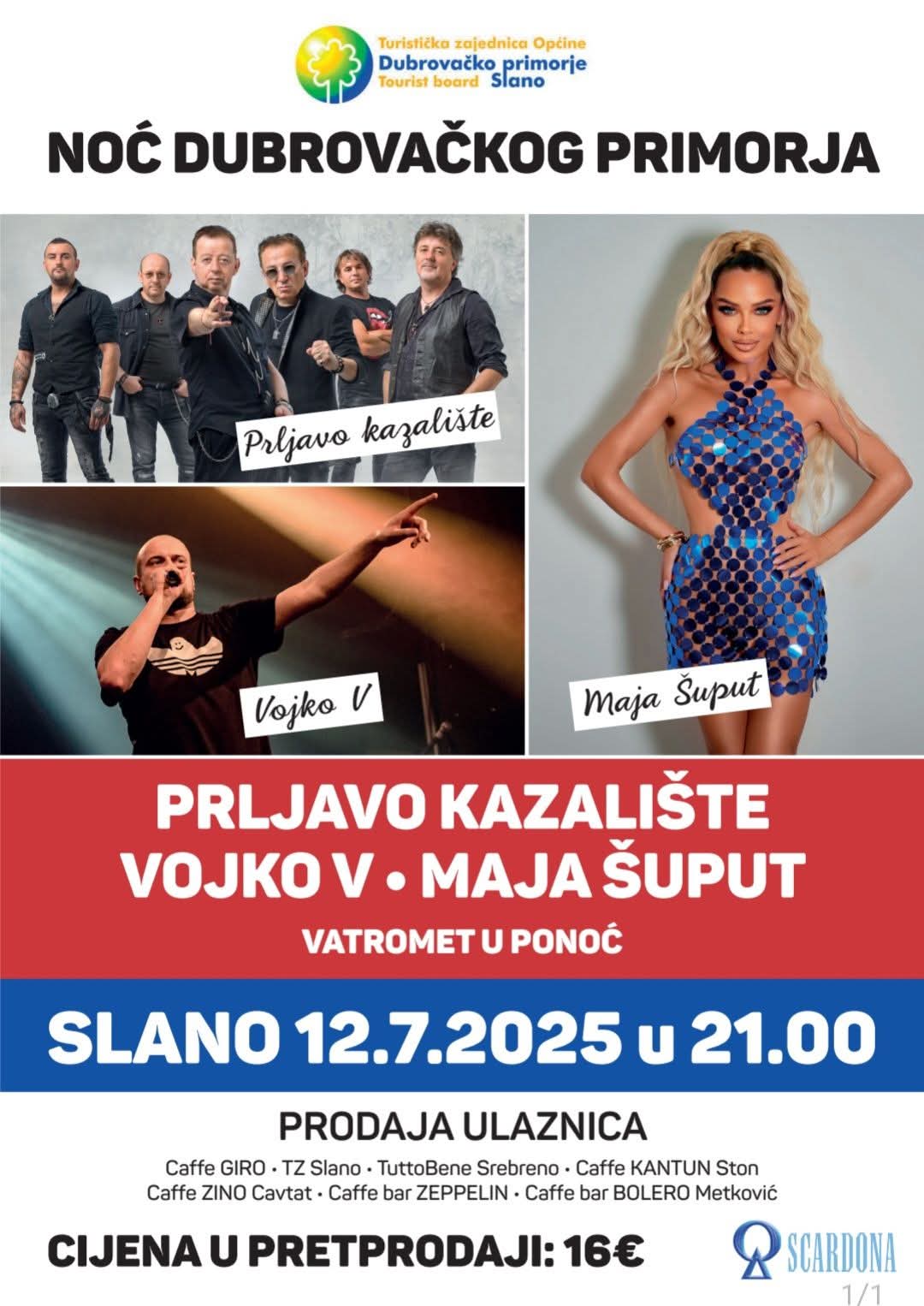 Doživi Noć Dubrovačkog primorja 2025 u Slanom uz Prljavo kazalište, Vojka V i Maju Šuput! Koncert 12.7. u 21h, vatromet u ponoć. Ulaznice u pretprodaji 16 € – osiguraj svoje na vrijeme
