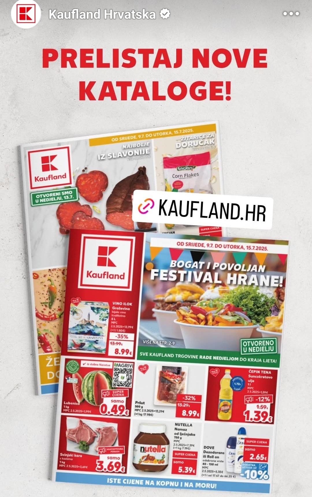 “Prelistaj novi Kaufland katalog od 9.7. do 15.7.2025. i iskoristi ljetne akcije! Lubenica 0,47 €/kg, Nutella, meso, vino i još mnogo toga – iste cijene na kopnu i moru!”