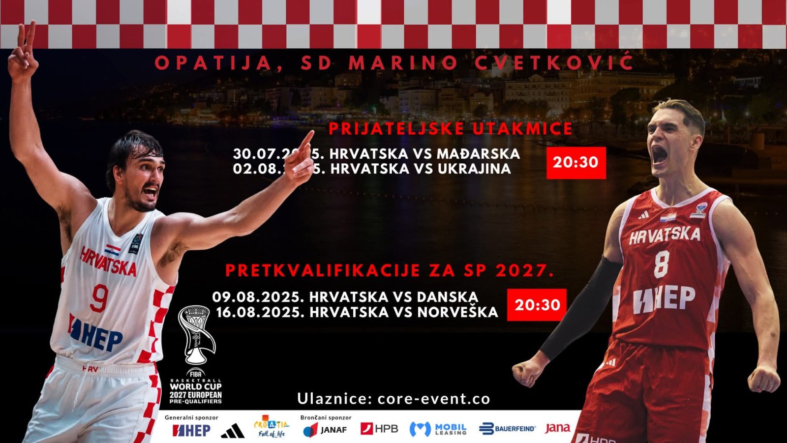 Hrvatska košarka u Opatiji 2025: Raspored prijateljskih utakmica i pretkvalifikacija za SP 2027