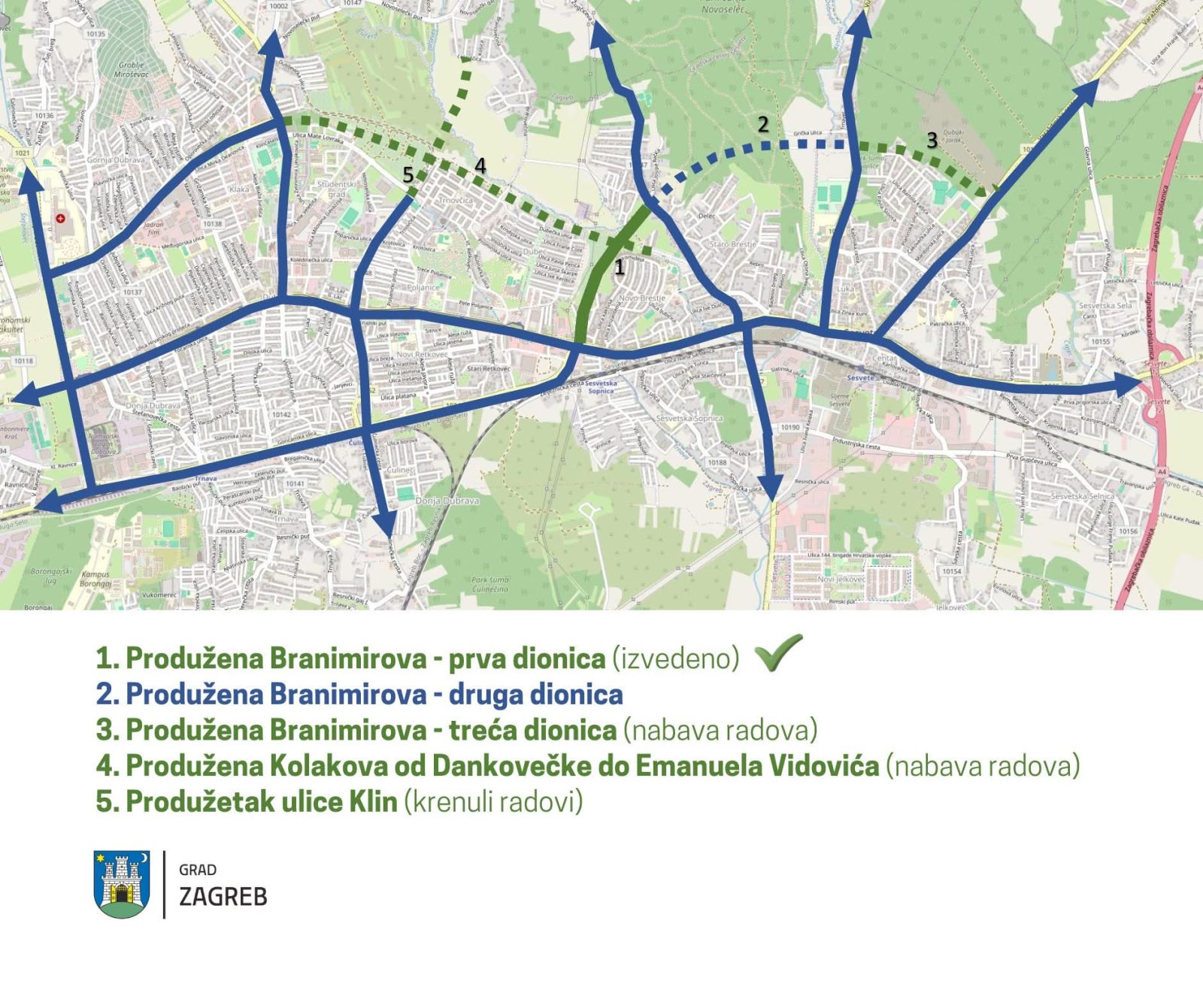 📍 Nova Kolakova zajedno s produženjem Branimirove činit će novi prometni koridor sjeverno od Avenije Dubrava i Zagrebačke ceste, što će značajno rasteretiti promet u Dubravi i Sesvetama – dvije gradske četvrti s više stanovnika nego bilo koji grad u Hrvatskoj osim Zagreba.