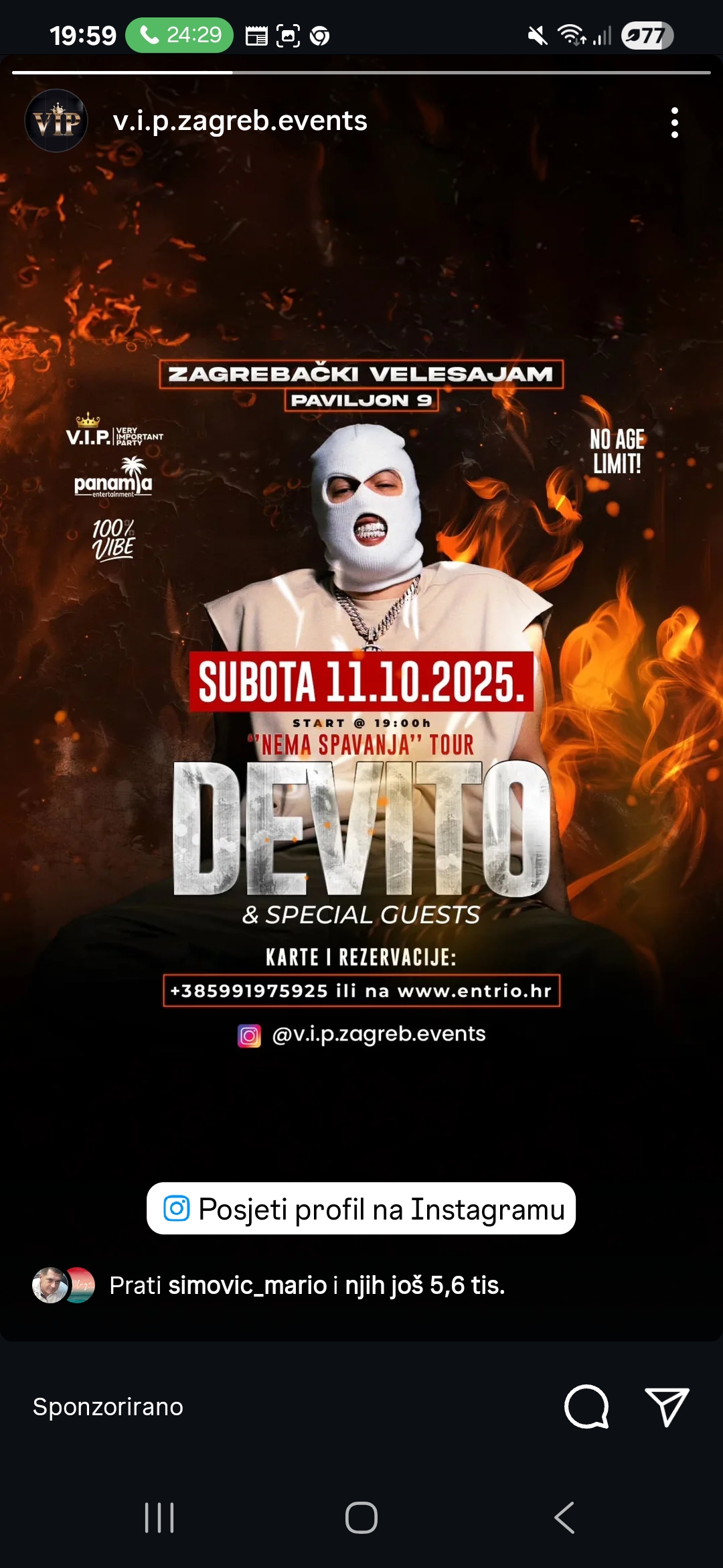Ne propustite spektakl – Devito dolazi u Zagreb 11. listopada 2025. u Paviljon 9 Zagrebačkog Velesajma! Najtraženiji regionalni trap izvođač na “Nema spavanja” turneji. Ulaznice dostupne na Entrio.hr.