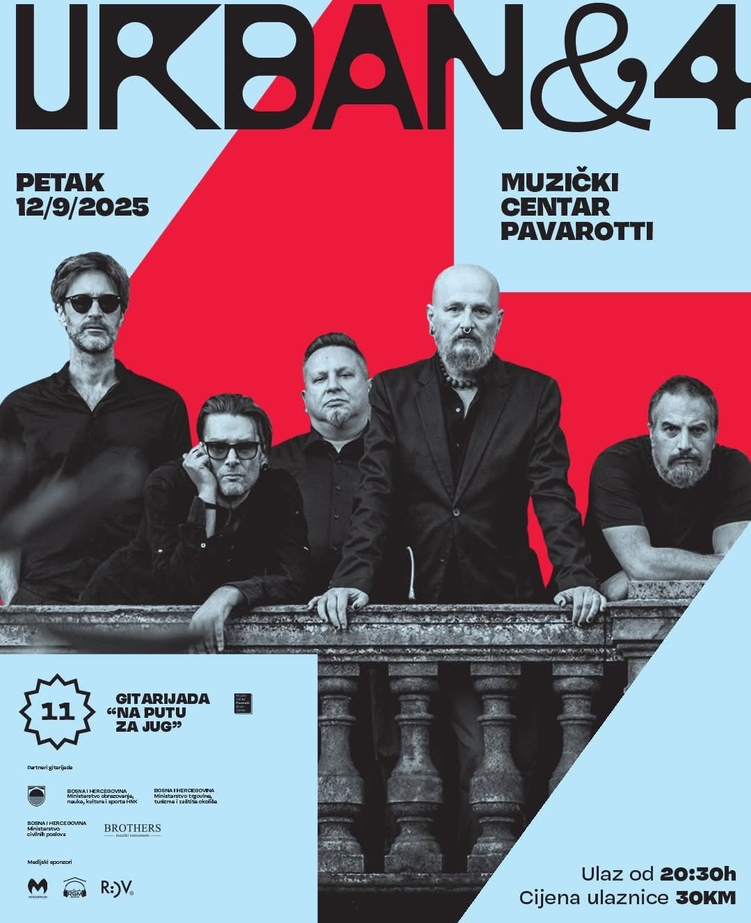 Urban & 4 dolaze u Mostar 12.9.2025. na 11. Gitarijadu “Na putu za jug”! Doživite nezaboravnu rock noć u Muzičkom centru Pavarotti. Ulaznice 30 KM.