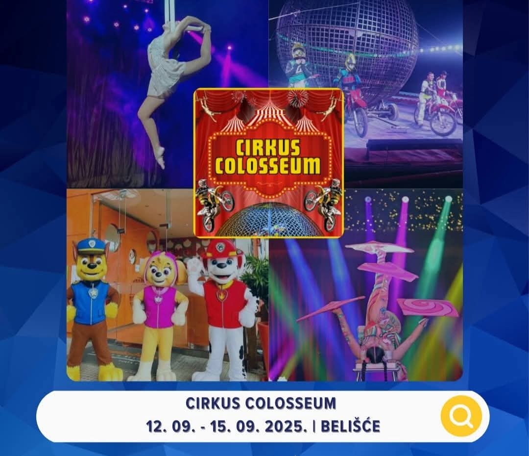 Ne propustite Cirkus Colosseum u Belišću od 12. do 15. rujna 2025.! Očekuju vas akrobati, motociklisti, junaci iz crtića i show za sve generacije.