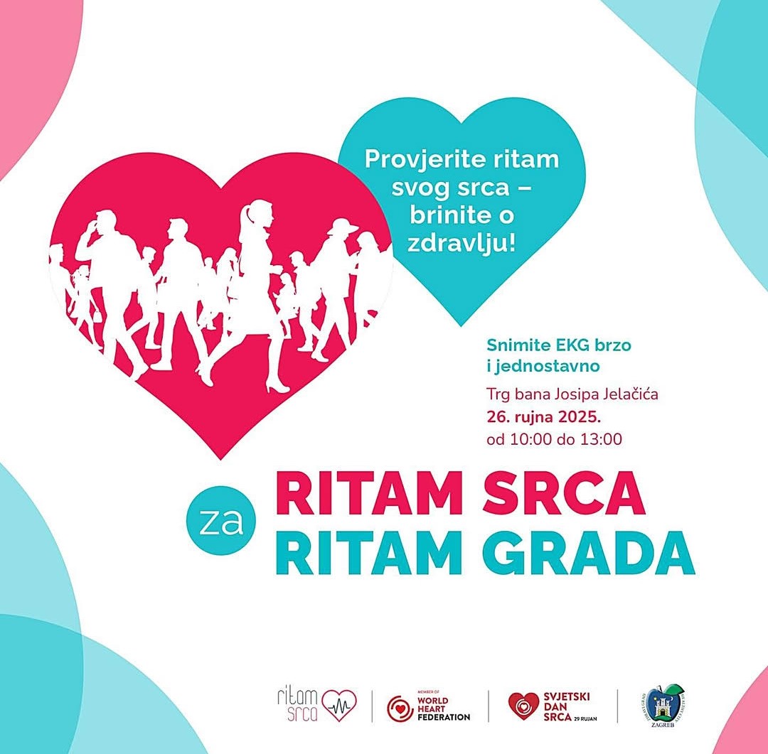 U petak, 26. rujna 2025. godine, na Trgu bana Josipa Jelačića, od 10:00 do 13:00 sati, održat će se velika javnozdravstvena akcija pod nazivom „Ritam srca za ritam grada“.