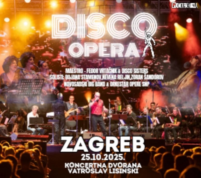 Zagreb će 25. listopada 2025. postati domaćin jedinstvenog glazbenog spektakla – Disco Opera on Tour 2025! Koncertna dvorana Vatroslava Lisinskog pretvorit će se u plesnu pozornicu na kojoj će se spojiti moćni operni vokali i bezvremenski disco hitovi.
