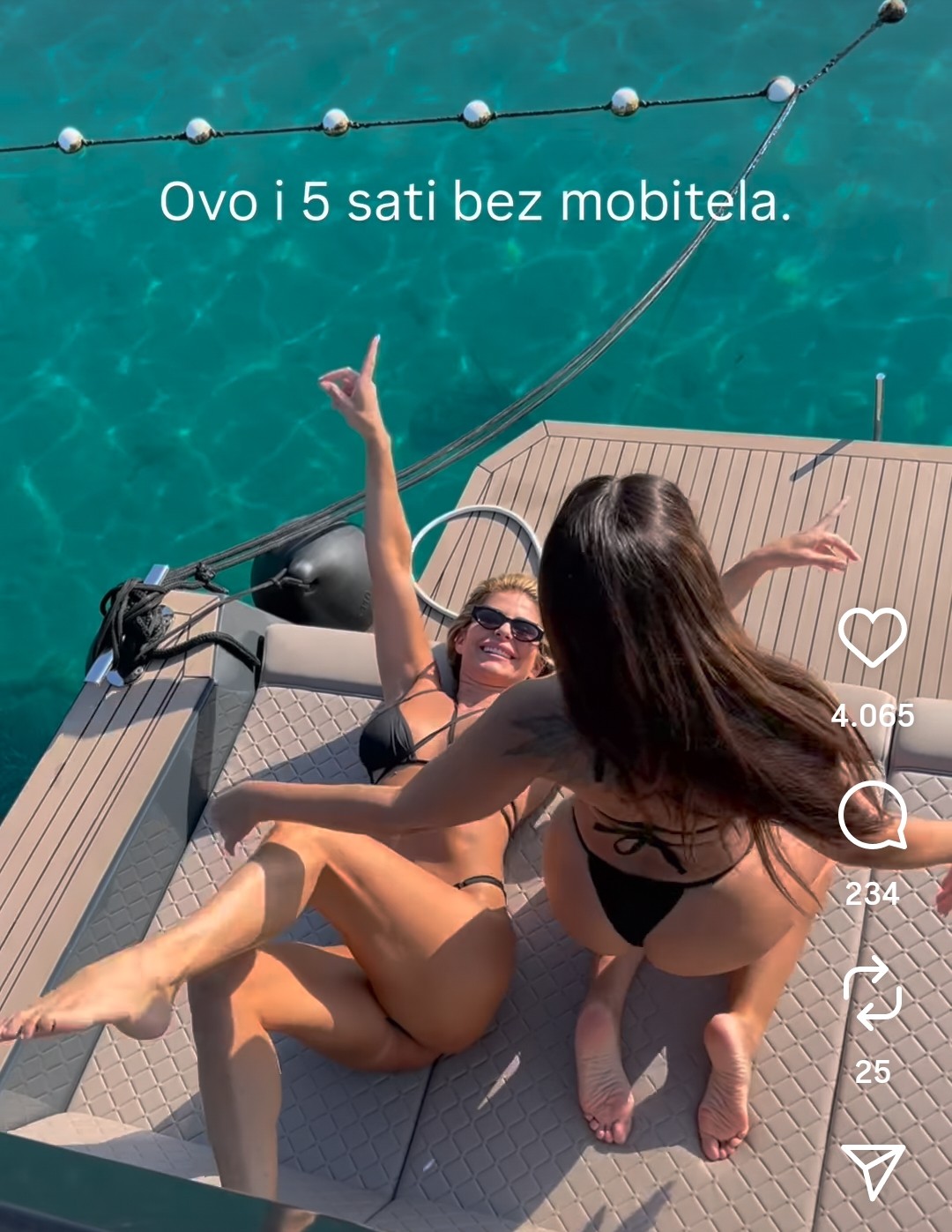 Renata Buljan i Žanamari Lalić pokazale su kako uživaju na jahti – oskudno odjevene plešu, skaču u more i hvale se s pet sati bez mobitela. Pogledajte atraktivni video!