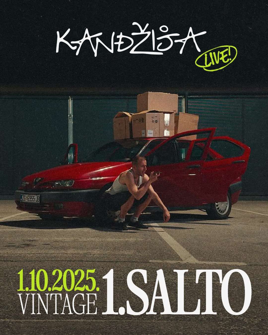Jedan od najkarizmatičnijih hrvatskih repera, Kandžija, vraća se na veliku pozornicu s novim albumom Trostruki Salto. Promocija će biti posebna jer je podijeljena na tri jedinstvena koncerta, a prvi u nizu – 1. SALTO – održava se srijedu, 01. listopada 2025. u Vintage Industrial Baru (VIB).