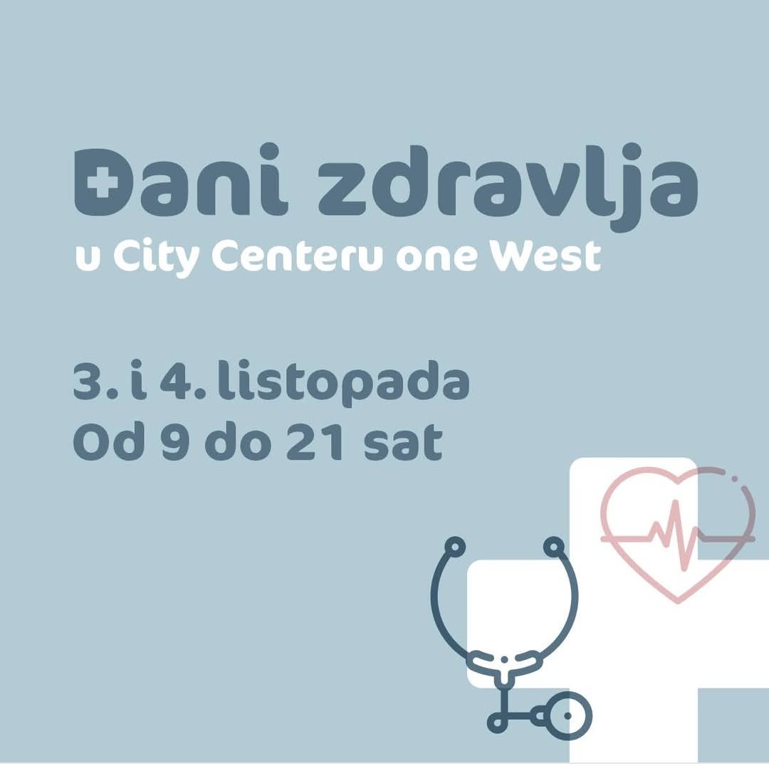 Ako želite iskoristiti priliku za besplatne preglede i savjete stručnjaka, rezervirajte 3. i 4. listopada za posjet City Centeru one West. Dani zdravlja odlična su prilika da se pobrinete za sebe i svoje najbliže – jer zdravlje uvijek dolazi na prvo mjesto!