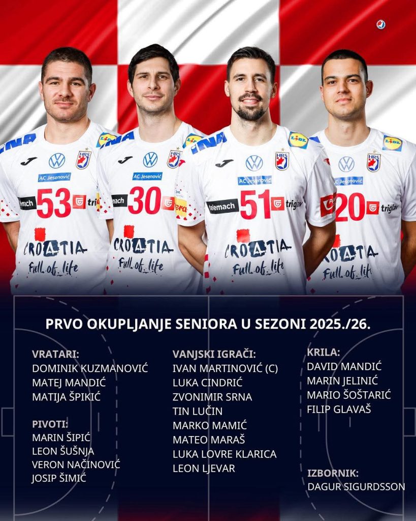 Hrvatski rukometni savez objavio je popis igrača za prvo okupljanje seniorske reprezentacije u sezoni 2025./26.. Izbornik Dagur Sigurdsson odabrao je 22 rukometaša koji će predstavljati Hrvatsku u nadolazećim pripremama i utakmicama. Najveća novost je što je kapetansku traku preuzeo Ivan Martinović, čime je označen početak nove generacije hrvatskog rukometa.