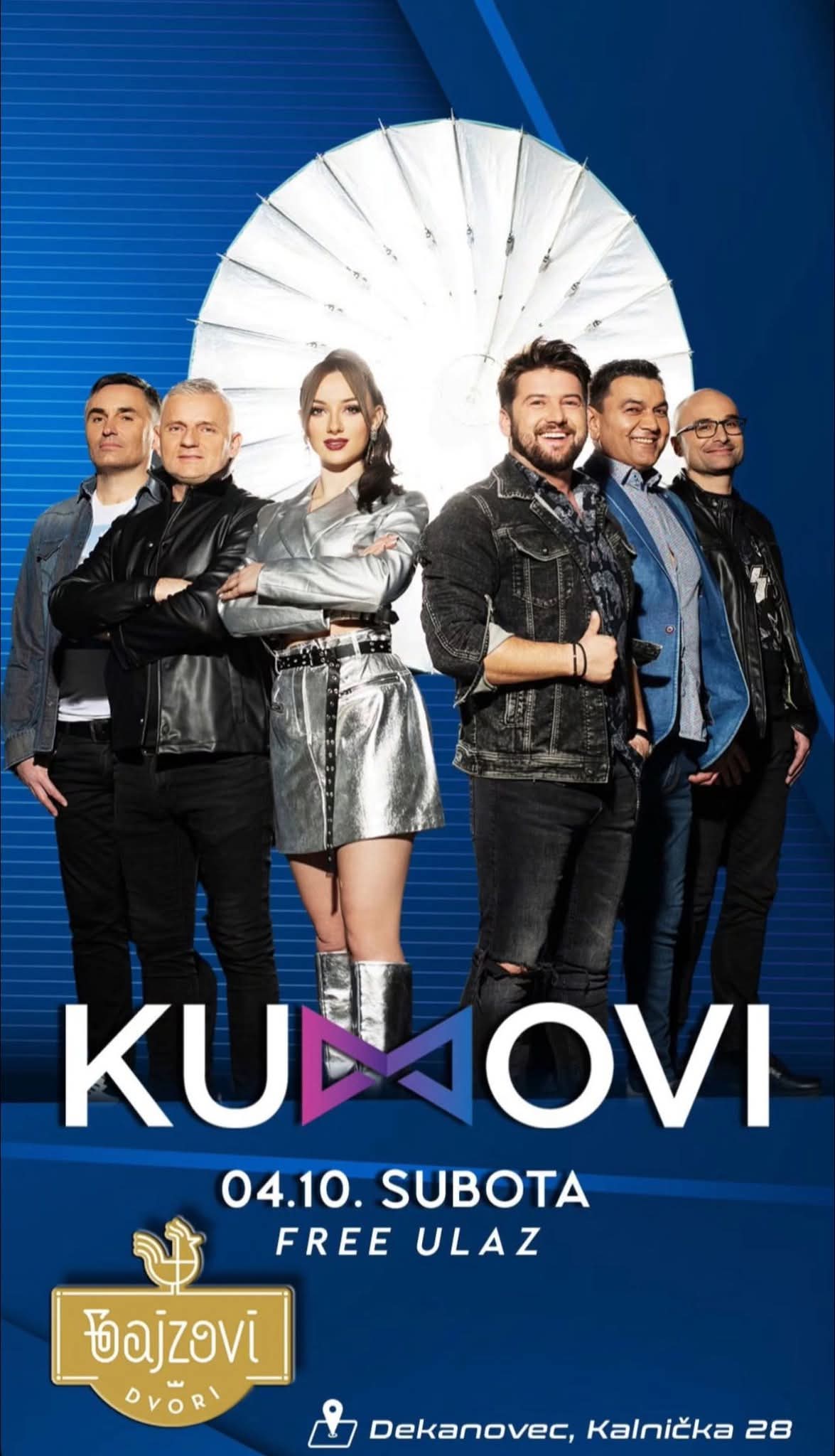 Subota, 4. listopada, rezervirana je za pravi glazbeni spektakl u Gajzovim dvorima u Dekanovcu (Kalnička 28). Na pozornicu stiže popularna grupa Kumovi, poznata po vrhunskim hitovima i energičnim nastupima koji osvajaju publiku diljem Hrvatske.