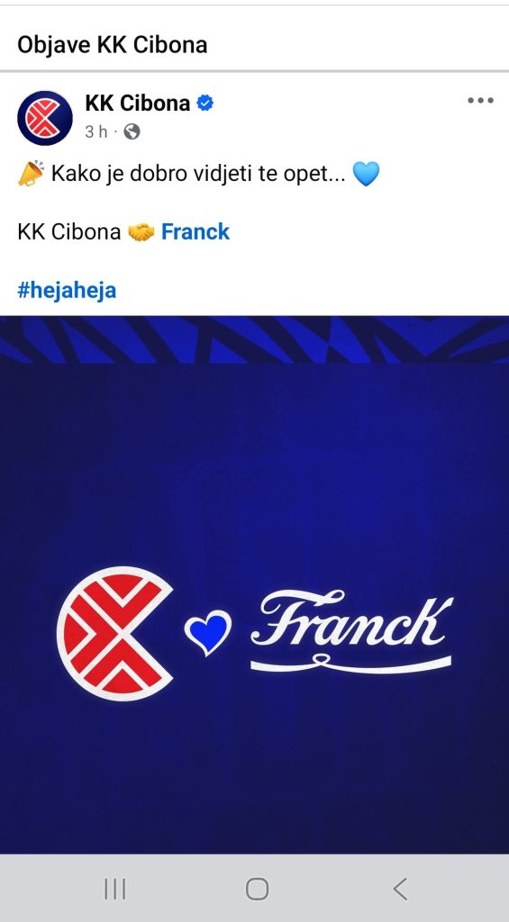 Cibona, simbol hrvatske košarke i klub s bogatom poviješću, vraća se uz podršku Francka – brenda čije su kave i čajevi već desetljećima dio svakodnevnog života. Ova suradnja donosi novu energiju, ali i nostalgiju jer mnogi pamte slavne dane kada je Franck bio uz Vukove s Tuškanca.