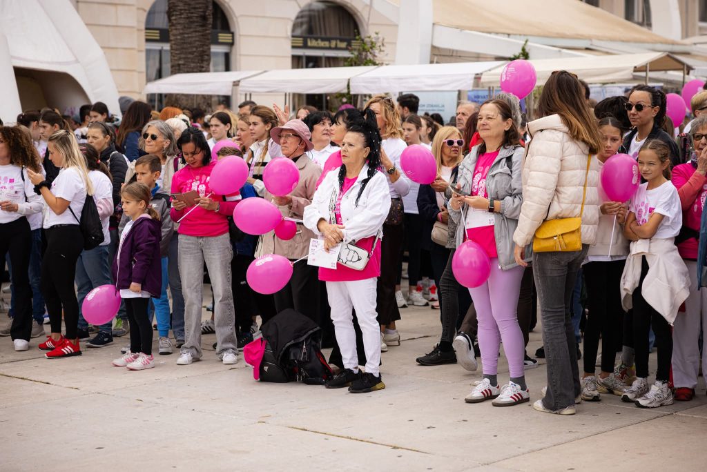Danas je splitska Riva zasjala u ružičastim bojama, ispunjena tisućama osmijeha, srca i nade. Unatoč kiši koja je pala neposredno prije početka, više od 5.000 sudionica i sudionika odazvalo se na najemotivniji događaj godine – utrku „Race for the Cure 2025“, posvećenu borbi protiv raka dojke.