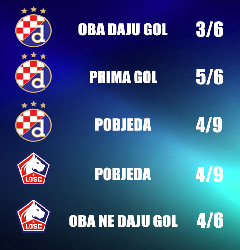 Lille je otvorio sezonu remijem 3:3 kod Bresta, pa nanizao pobjede protiv Monaca, Lorienta i Toulousea, nakon čega im se forma pretvorila u nestabilnu vremensku prognozu s kojom nikada ne znaš na čemu si. U protekla dva mjeseca je gotovo postalo pravilo da nakon svake pobjede slijedi poraz i obrnuto, što nam odlično opisuje i uzorak od zadnjih 6 utakmica u kojima bilježe 3 pobjede i 3 poraza. U domaćem prvenstvu drže odlično četvrto mjesto sa 7 bodova zaostatka za vodećim PSG-om, a u EL su kroz prva 4 kola skupili solidnih 6 bodova pobijedivši Brann i Romu, te izgubivši od PAOK-a i Crvene Zvezde. Ousmane Toure i Marc-Aurele Caillard sigurno neće konkurirati za ovu utakmicu zbog ozljeda, dok je Alexsandrov nastup dan uoči petog kola još uvijek upitan.