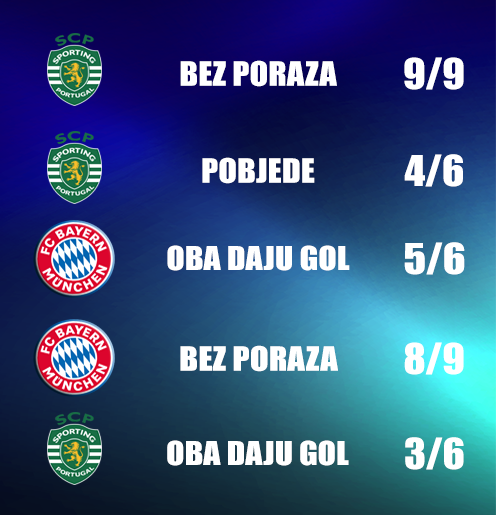 Na pobjedu Bayerna bookmakeri nam nude tečaj 1.25! Dakle, sve je jasno, upitno je jedino koga će 1.25 zadovoljiti! Jedinica na Hendikep (0:1) djeluje već solidno sa tečajem 1.63, a ako vjerujete da Bavarci mogu do pobjede i sa 3 gola razlike, na listić ćete upisati odličan tečaj 2.50! Mogao bi vam biti zanimljiv i podatak da je Sporting u svakoj utakmice ove sezone postigao barem gol (osim u Superkupu), a ako se niz nastavi to bi moglo značiti prolazak oklada ODGi3+ sa odličnim tečajem 2.00! Sretno!