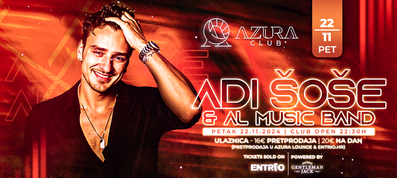 Spremite se za noć vrhunskih glazbenih hitova jer Adi Šoše i AL Music Band preuzimaju pozornicu Azura Cluba u petak, 22.11.2024.! Klub otvara svoja vrata u 22:30, a očekuje vas večer puna strasti, energije i nezaboravne glazbe.