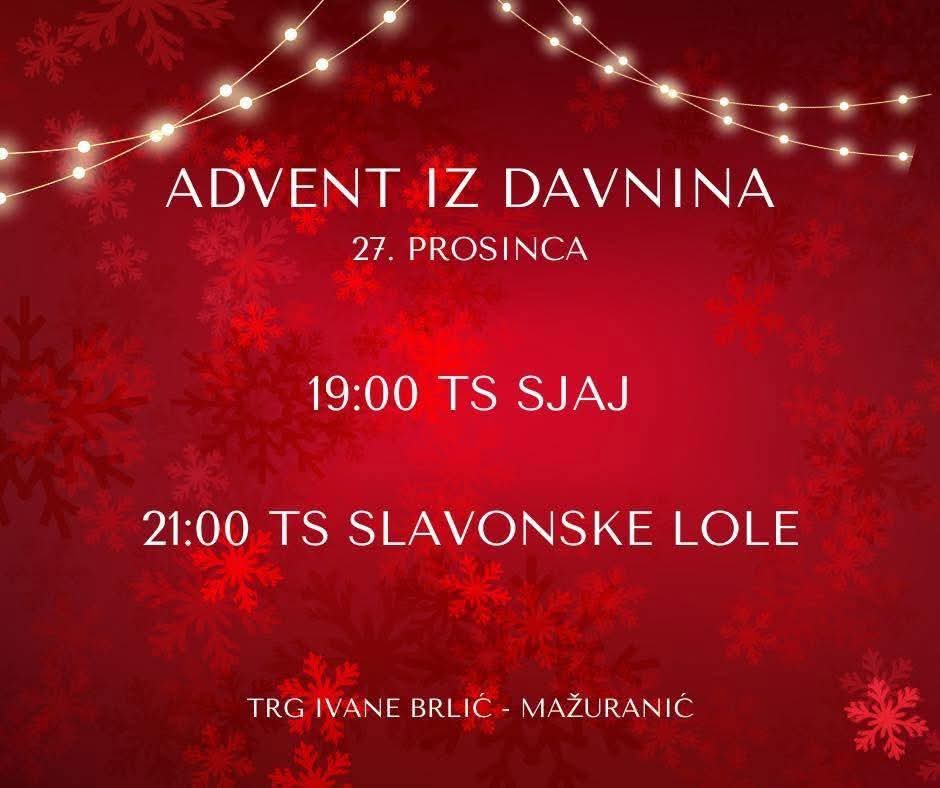 U sklopu čarobnog Adventa iz davnina, koji se ove godine održava na predivnom Trgu Ivane Brlić-Mažuranić, očekuje nas večer ispunjena glazbom i veseljem. 27. prosinca, s početkom u 19:00 sati, nastupit će TS Sjaj, dok će u **21:00 sat atmosferu dodatno zagrijati legendarni TS Slavonske Lole.