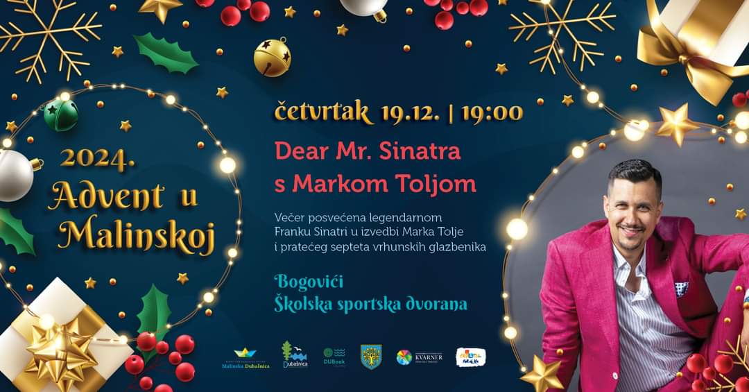 Pridružite se Adventu u Malinskoj 2024. na glazbenom spektaklu “Dear Mr. Sinatra” s Markom Toljom. Doživite čaroliju Franka Sinatre 19. prosinca u Bogovićima!