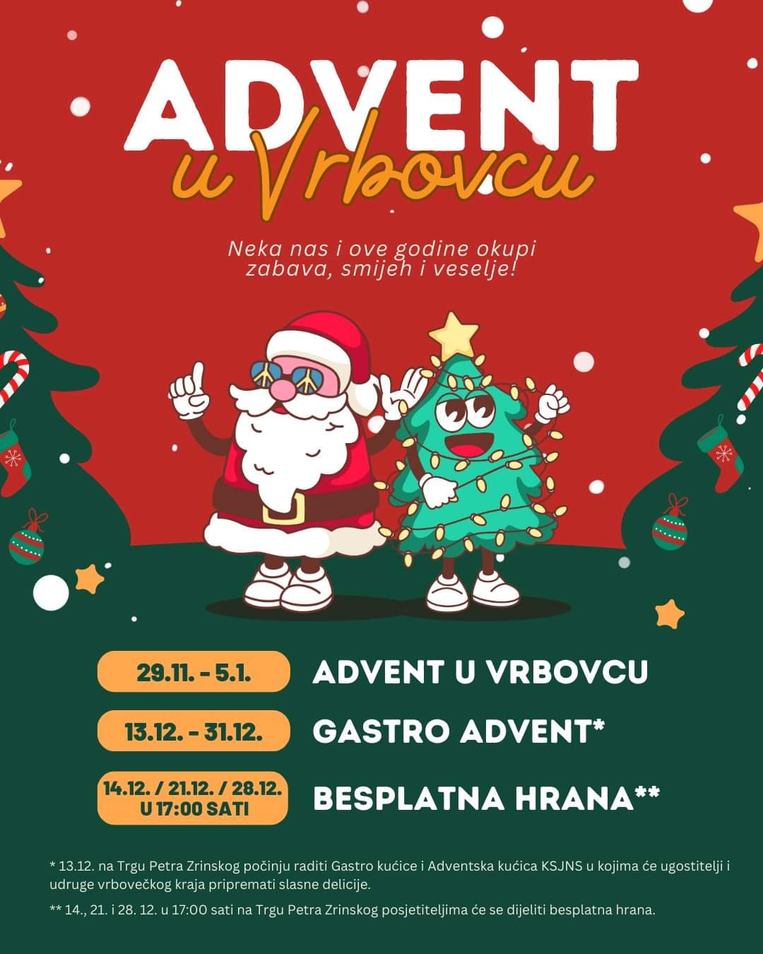 Advent u Vrbovcu ponovno donosi radost, smijeh i nezaboravna blagdanska iskustva! Od 29. studenog do 5. siječnja, Trg Petra Zrinskog pretvara se u čarobno mjesto gdje blagdanski duh dolazi do izražaja. Ovo je prilika da se okupimo i uživamo u raznovrsnim sadržajima za sve generacije.