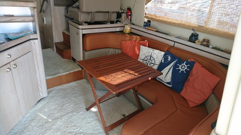 Cijela unutrašnjost je pretapecirana prije nekoliko godina, a krma je obložena corkline pluto podlogom. Sigurnost je dodatno osigurana sustavom automatskog gašenja požara u motornom prostoru. Od dodatne opreme vrijedi izdvojiti aluminijsku pasarelu, inox nosače pomoćnog čamca, inox skale, kompletnu inox ogradu, GPS, fish finder te Alpine audio sustav s daljinskim upravljačem.