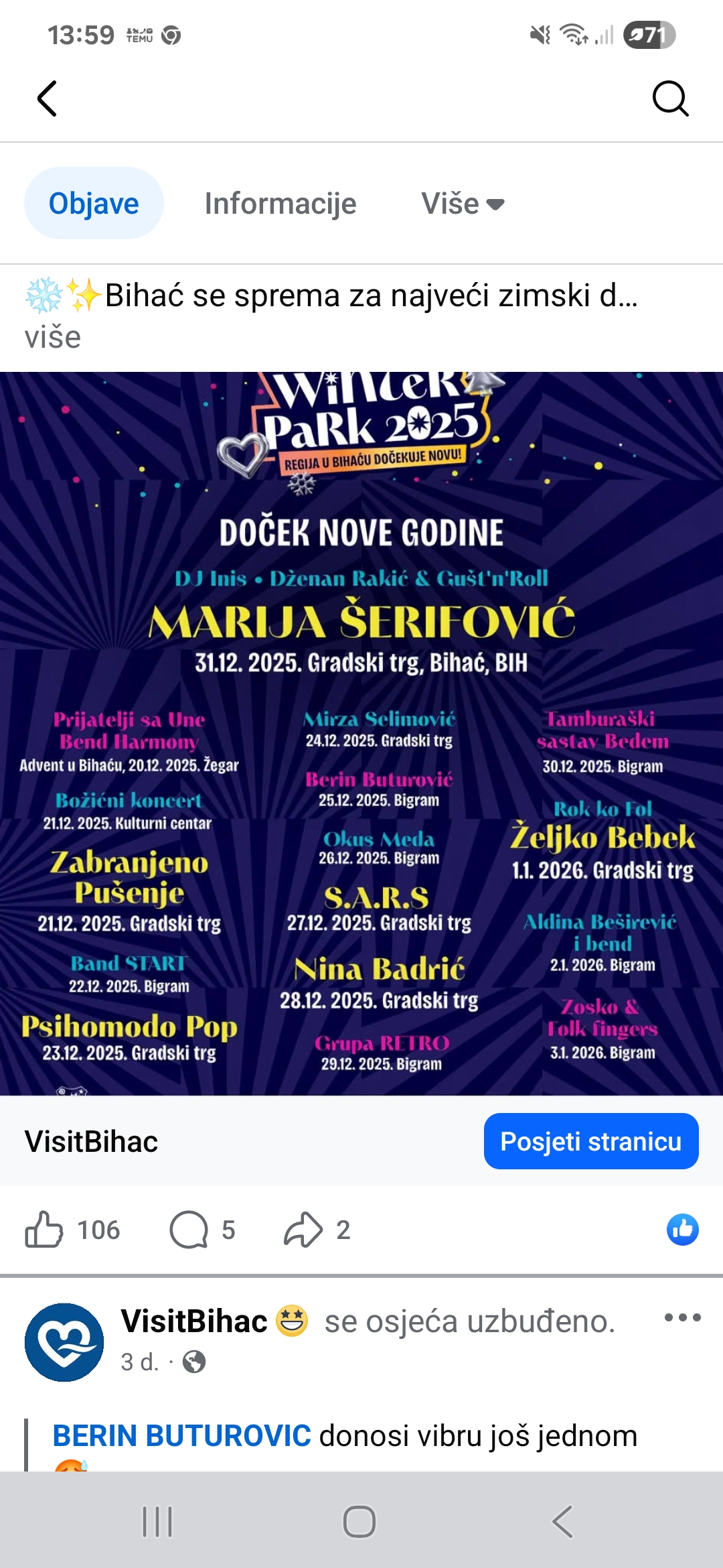 Ovogodišnji Winter Park potvrđuje Bihać kao jedno od najpoželjnijih zimskih odredišta u regiji – s bogatim glazbenim programom, raznolikim sadržajem i vrhunskom organizacijom koja svake godine privlači sve više posjetitelja.