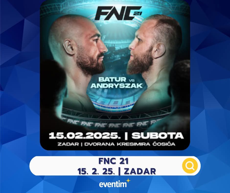 FNC 21, najveći borilački spektakl Fight Nation Championshipa, dolazi u Zadar! Na večer punu adrenalina i vrhunskih borbi gledatelji će imati priliku svjedočiti jednom od najuzbudljivijih sportskih događaja godine. Glavni događaj večeri je obračun zadarskog teškaša Martina Batura i poljskog borca Michala Andryszaka, što garantira nezaboravne trenutke u ringu.