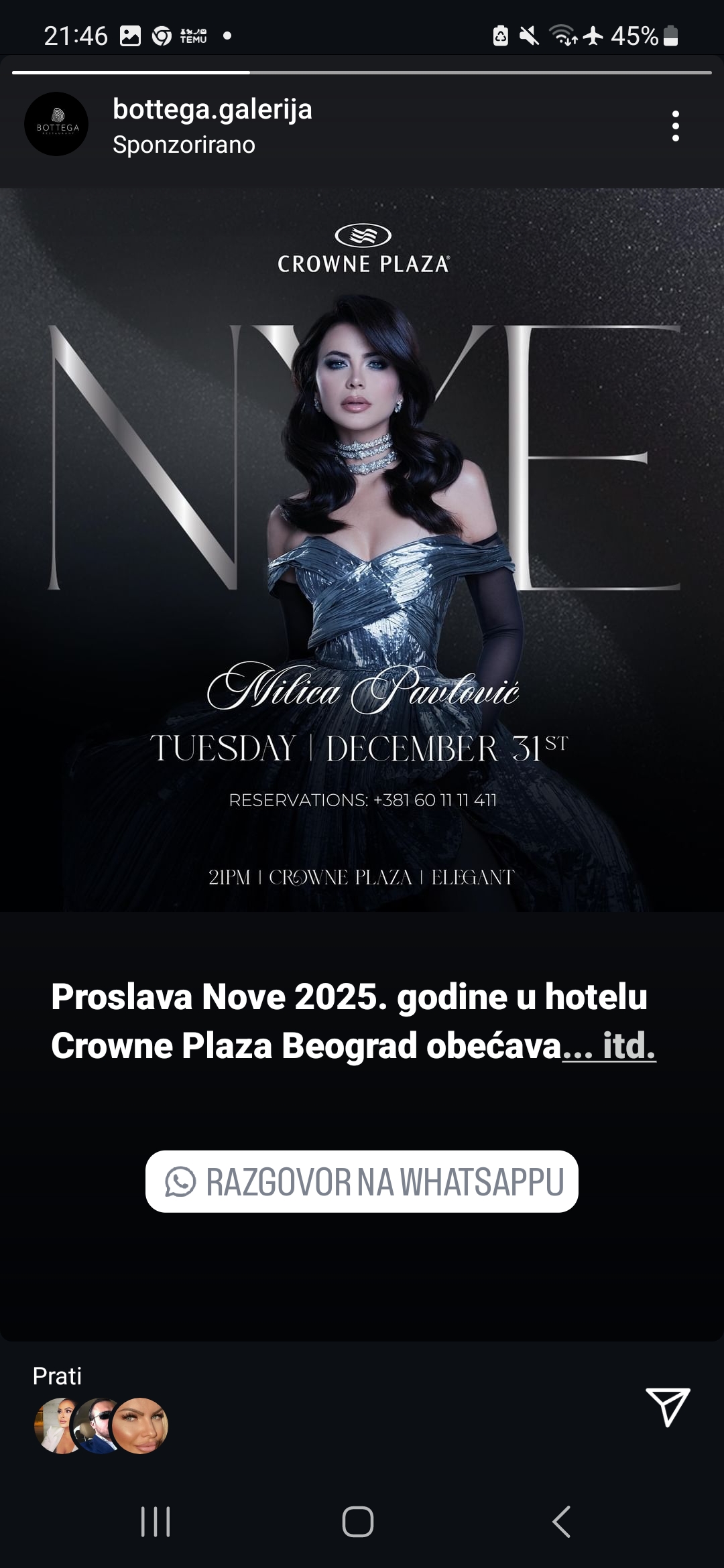 Doček Nove 2025. godine u hotelu Crowne Plaza Beograd uz Milicu Pavlović