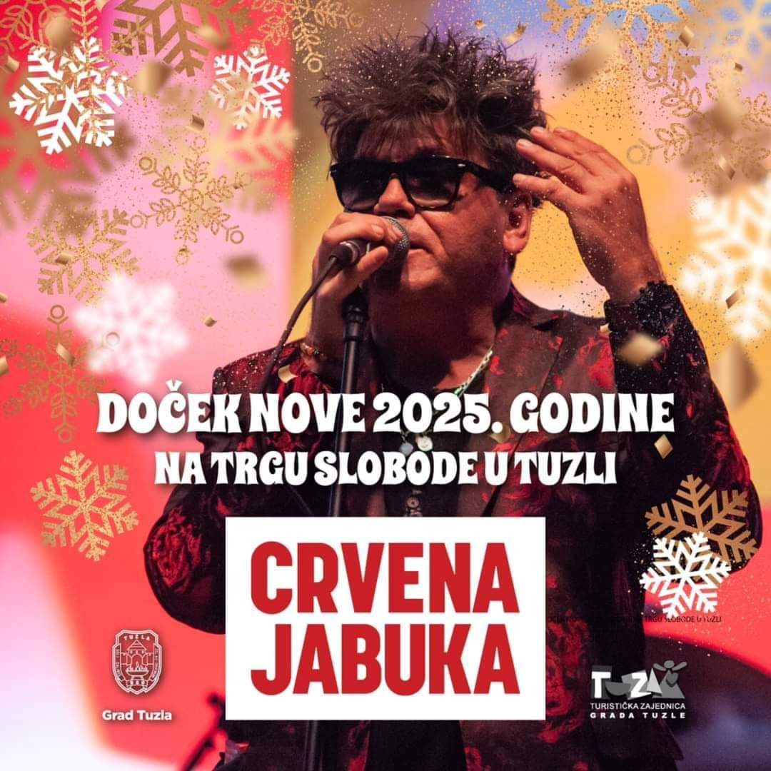 Pripremite se za nezaboravnu noć i dočekajte Novu 2025. godinu u Tuzli na Trgu Slobode uz Crvenu Jabuku!