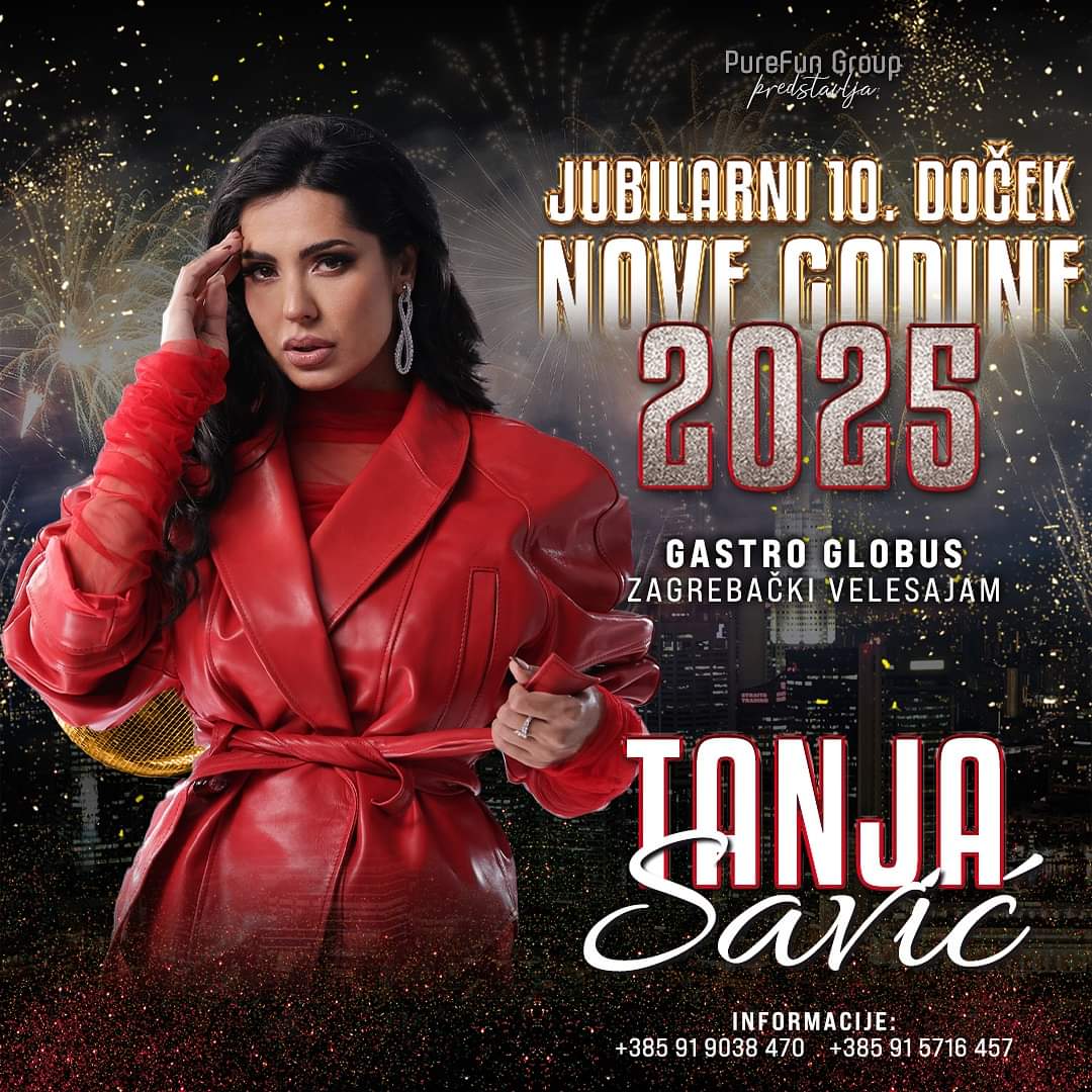 Pripremite se za spektakularni doček Nove godine u Zagrebu! Na jubilarnom 10. dočeku Nove godine 2025. u Gastro Globusu na Zagrebačkom Velesajmu, prisutne će svojim nastupom oduševiti popularna pjevačica Tanja Savić.