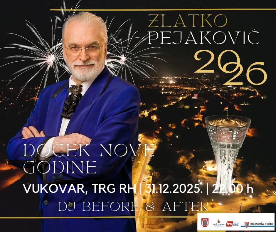 Doček Nove godine 2026. u Vukovaru ove će godine biti poseban – grad na Dunavu priprema jedan od najatraktivnijih i najemotivnijih dočeka u Hrvatskoj, a glavna zvijezda večeri bit će legendarni Zlatko Pejaković. Tradicionalno okupljanje na Trgu Republike Hrvatske započet će 31. prosinca 2025. u 22:00 sata, uz bogat glazbeni i zabavni program.