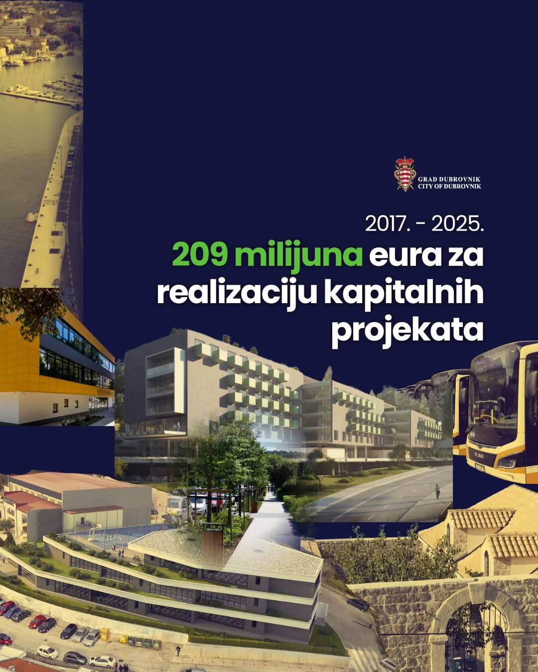 Grad Dubrovnik ostvario je jedan od najvećih razvojnih iskoraka u svojoj modernoj povijesti. Od 2017. do 2025., u suradnji s Razvojnom agencijom DURA te gradskim ustanovama i poduzećima, Grad je povukao ukupno 209.450.154,25 eura bespovratnih sredstava iz europskih i nacionalnih fondova.