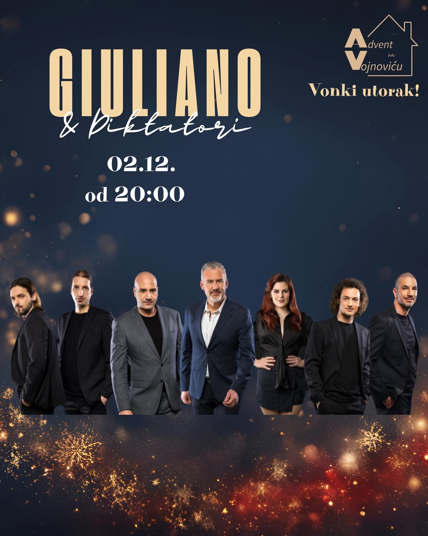 Ne propustite koncert Giuliana & Diktatora 2.12. od 20:00 na Adventu na Vojnoviću! Donosimo sve detalje, program i što možete očekivati od ovog glazbenog spektakla.