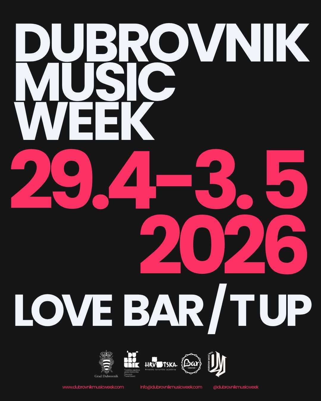 Dubrovnik – Dubrovnik Music Week 2026 održava se od 29.4. do 3.5. u Love Baru (TUP). Objavljen lineup izvođača i detalji programa.