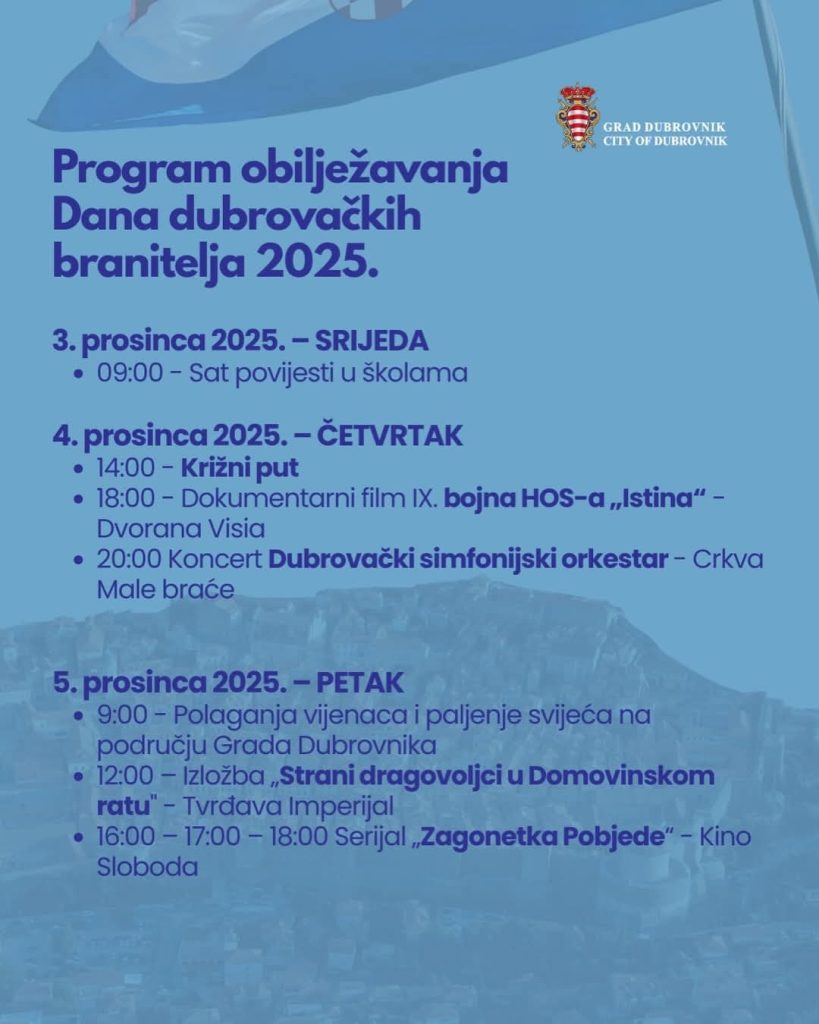 Ovaj opsežni program još jednom potvrđuje važnost očuvanja sjećanja na stradanja, hrabrost i zajedništvo dubrovačkih branitelja i svih građana koji su branili grad i domovinu.