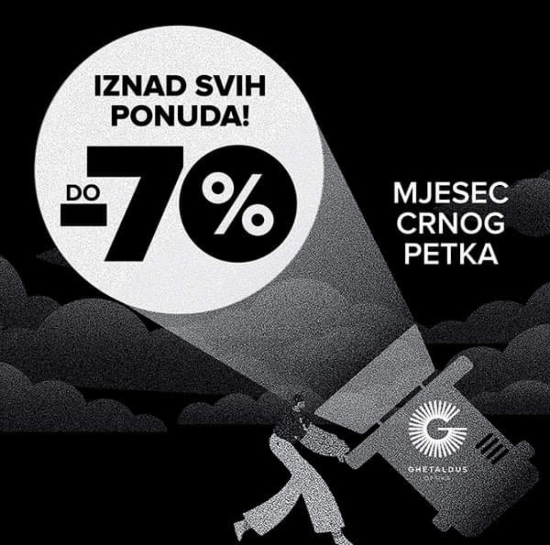 Ne propustite priliku posjetiti najbližu Ghetaldus poslovnicu ili njihovu web stranicu kako biste iskoristili ovu ponudu koja vrijedi cijeli mjesec. Mjesec crnog petka u Ghetaldusu donosi neponovljive popuste, pa požurite dok zalihe traju!