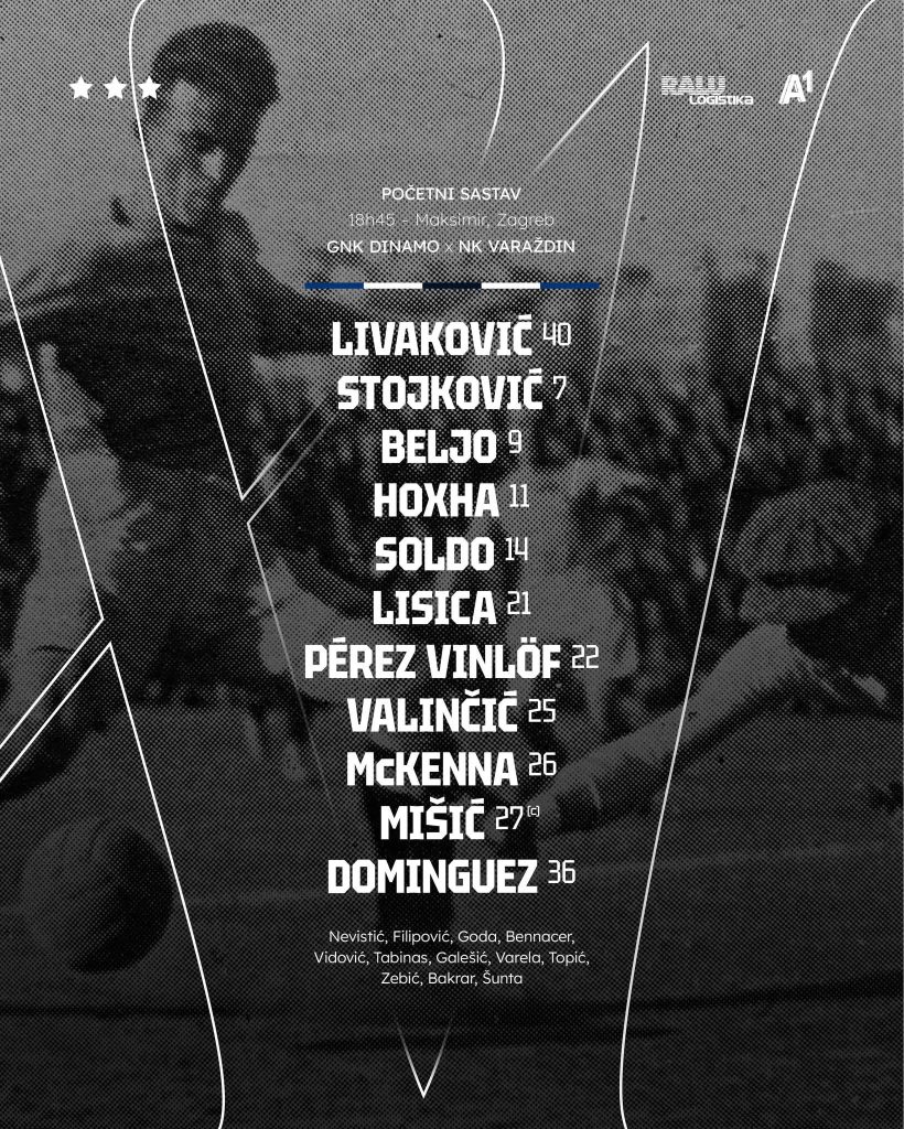 Zagreb – GNK Dinamo objavio je početni sastav za susret protiv Varaždina koji se igra na stadionu Maksimir s početkom u 18:45.
