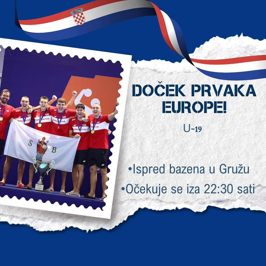 Večeras se ispred bazena u Gružu organizira doček prvaka, reprezentativaca do 19 godina. Mauro Prkoča, Ante Jerković, Maro Šušić, Ivuša Burđelez i Vlaho Pavlić, zajedno s trenerom Igorom Računicom slijeću na aerodrom u Čilipima u 21:55 sati, a njihov dolazak ispred bazena očekuje se iza 22:30 sati.