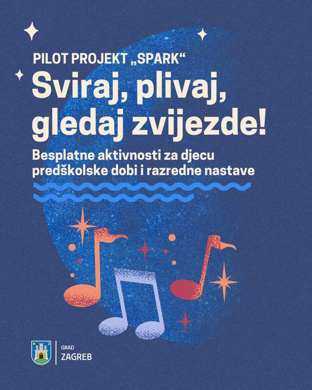 📢 Grad Zagreb osigurava besplatne sportske, edukativne i kulturne aktivnosti za 500 djece u sklopu pilot-projekta “SPARK – sviraj, plivaj, gledaj zvijezde!” 🎨🏊‍♂️🔭. Projekt je namijenjen djeci predškolske dobi i nižih razreda osnovne škole. Cilj je financijski olakšati obiteljima i uključiti djecu u riziku od siromaštva i socijalne isključenosti. Aktivnosti uključuju: 🎭 “Radost iz Ribnjaka” – glazbeno-lutkarski program za 300 djece. 🏊‍♀️ “Mala škola plivanja” – za 135 plivača-početnika. 🌌 “Astronomija za najmlađe” – za 60 djece. Za provođenje Projekta Grad je uspješnom prijavom na javni poziv Ministarstva demografije osigurao 100.000 eura, a kako bi omogućio sudjelovanje što većeg broja djece, za tu će namjenu izdvojiti još 100.000 eura iz Proračuna. 🌟