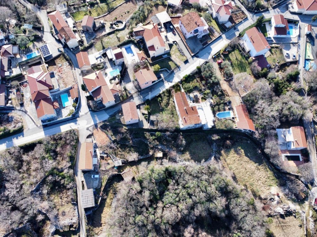 Zemljište se sastoji od dvije katastarske čestice (z.č. 3179 i 3182 k.o. Dobrinj) te ima pravilan oblik koji omogućuje jednostavno planiranje gradnje. Dimenzije parcele omogućuju parcelaciju na dvije manje cjeline, svaka površine približno 400 m², uz interni pristupni put, što dodatno povećava investicijski potencijal.