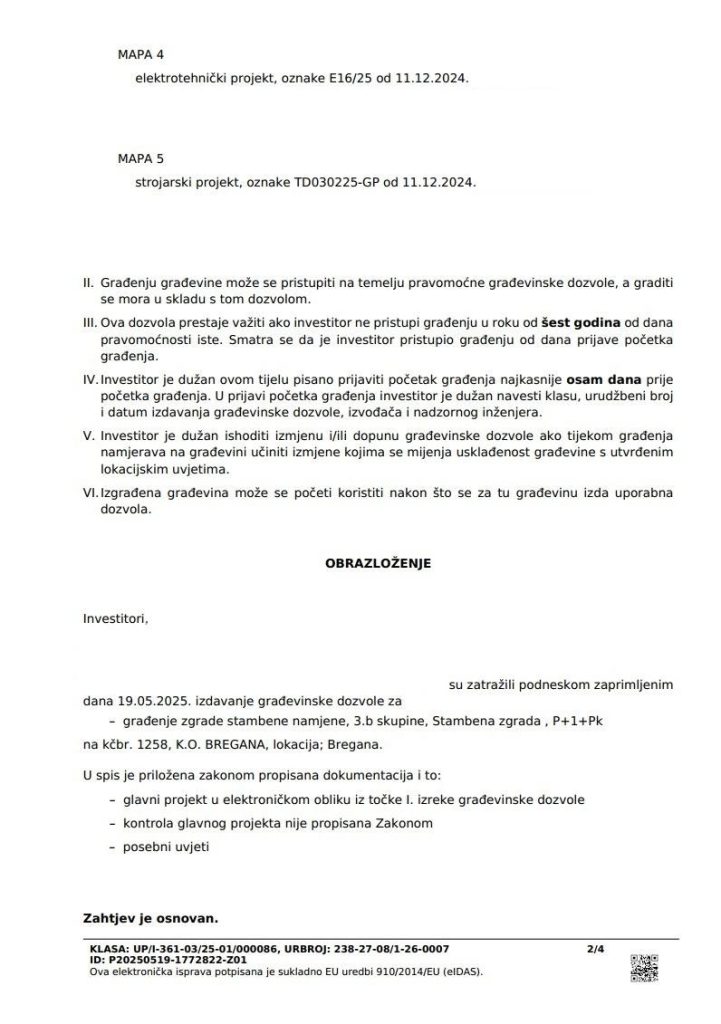 Ovo građevinsko zemljište u Bregani ističe se kao rijetka prilika na tržištu zahvaljujući gotovom projektu i pravomoćnoj građevinskoj dozvoli, što omogućuje trenutni početak gradnje bez dodatnih procedura. Parcela pravilnog oblika pruža fleksibilnost u organizaciji prostora, dok projekt predviđa izgradnju dvije moderne stambene jedinice ukupne bruto površine oko 300 m².