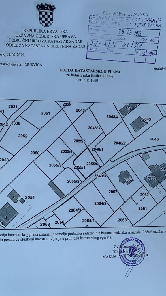 Zadar – prodaja građevinskog zemljišta 414 m² u Murvici Donjoj. Cijena 59.000 €. Mirna lokacija, pogled na Velebit, uredno vlasništvo.