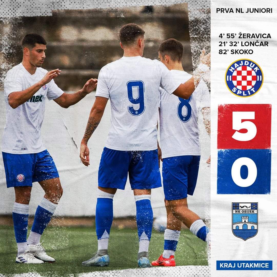 U utakmici Prve NL Juniori, juniori Hajduka su ostvarili impresivnu pobjedu rezultatom 5-0 protiv NK Osijeka, pokazavši dominaciju na terenu. Utakmica, koja se igrala u Splitu, bila je obilježena izvrsnom igrom domaće momčadi, a golovi su padali u ključnim trenucima, osiguravajući Hajduku tri važna boda.
