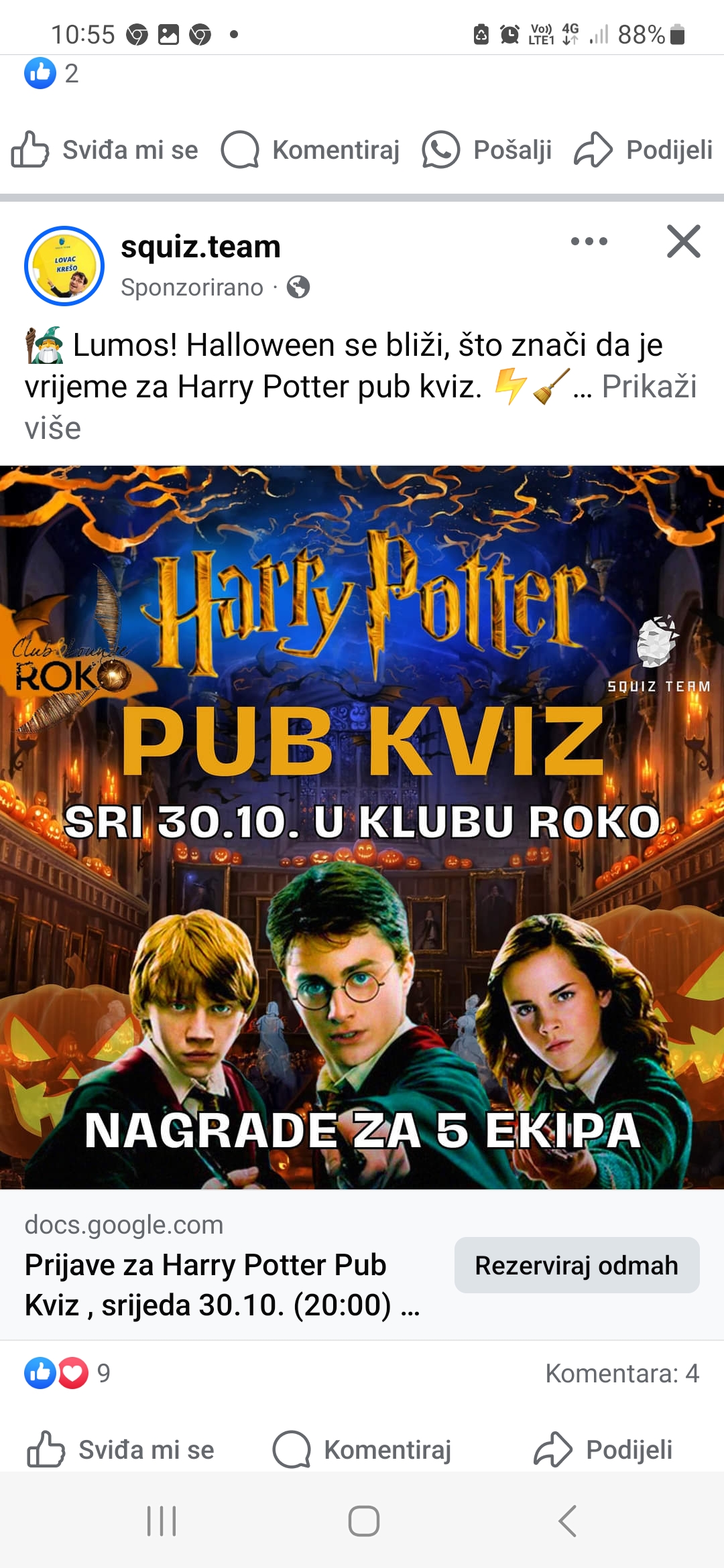 Pripremite svoje štapiće i obucite omiljene Hogwarts ogrtače jer se približava jedinstveni događaj koji svaki ljubitelj magije ne smije propustiti! Harry Potter Pub Kviz u klubu Roko bit će prava poslastica za sve fanove ovog čarobnjačkog serijala, koji žele testirati svoje znanje o avanturama Harryja, Hermione i Rona.