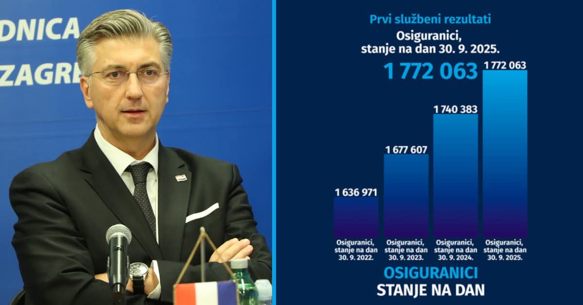 „Uistinu možemo biti zadovoljni današnjim danom,“ poručio je premijer, komentirajući nove podatke Hrvatskog zavoda za mirovinsko osiguranje (HZMO).